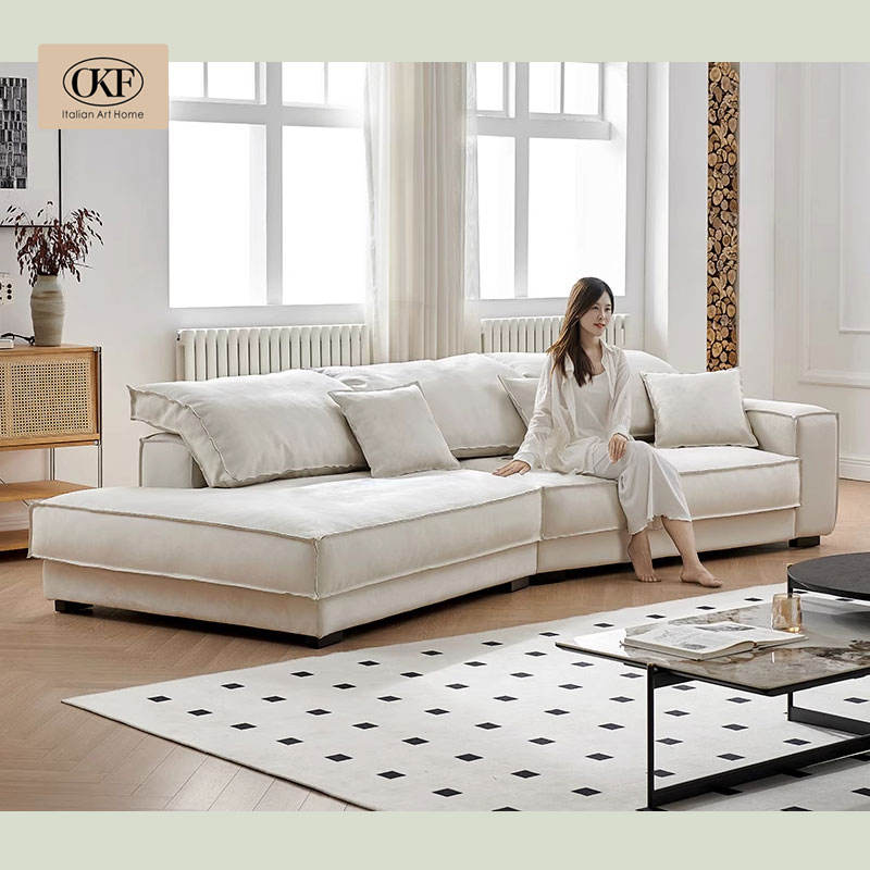 Sofá seccional modular italiano personalizable OKF, sofá sencillo y moderno para sala de estar, minimalista, de polipiel para sala de estar, sofá en L