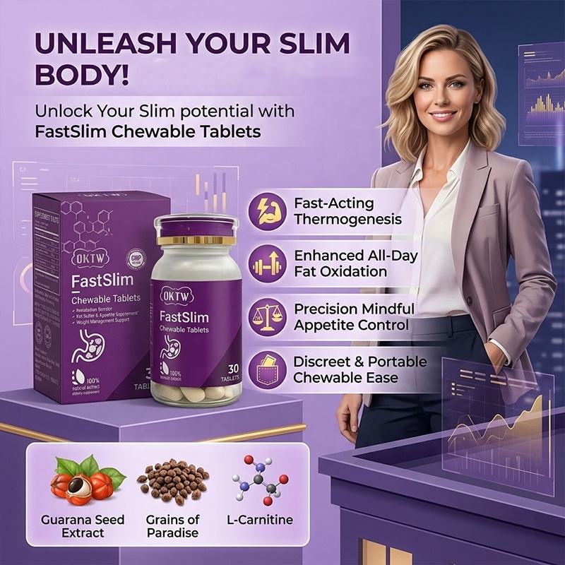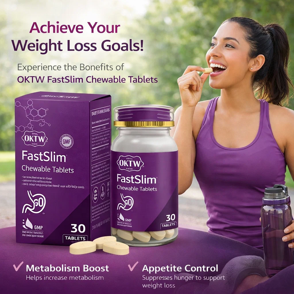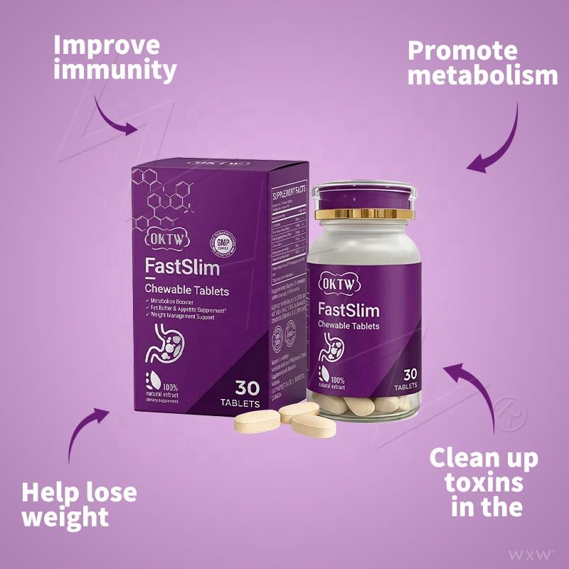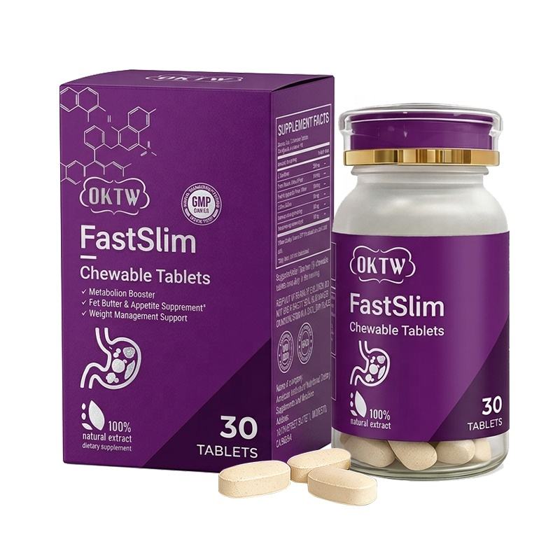 OKTW FastSlim, Tabletas Masticables para Controlar el Apetito, Saciedad, Pérdida de Peso, Quema de Grasa, Adelgazamiento, en Stock, Muestras Gratis, Marca Privada