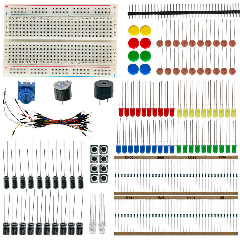 OKY1003 Kit de Componentes Electrónicos de Alta Calidad con Placa de Pruebas sin Soldadura y Cables de Puente para Proyectos de Bricolaje