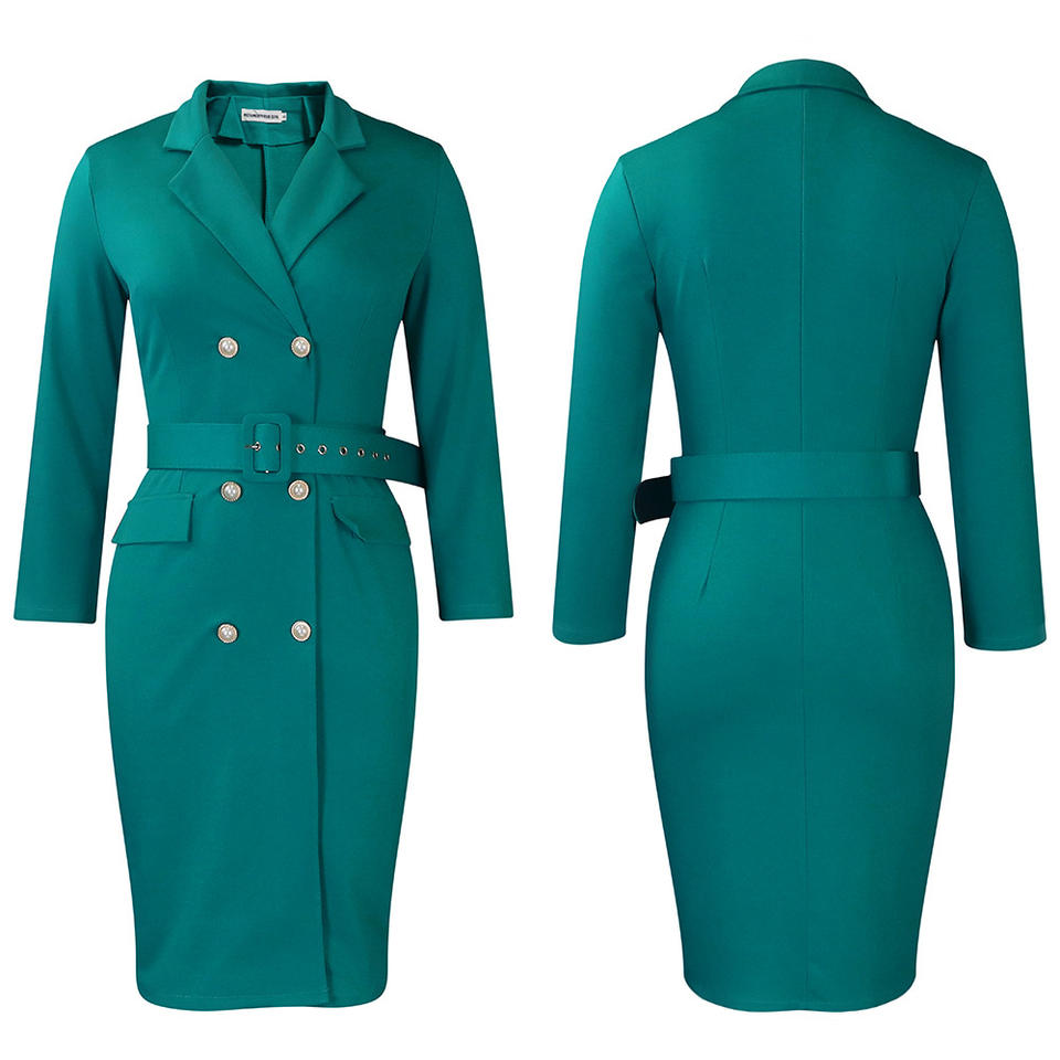 Vestido de Mujer Estilo Africano con Cuello de Traje, Color Sólido, Doble Botonadura y Cinturón, a la Moda