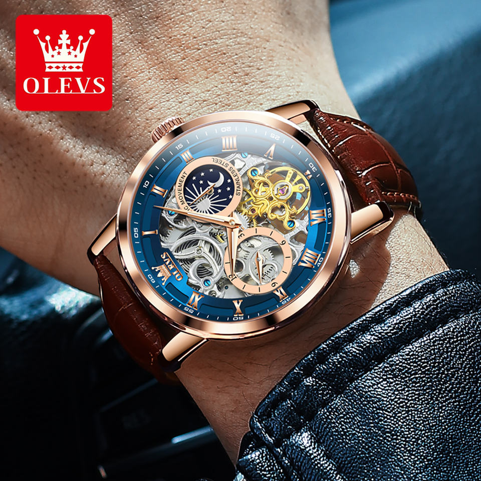 OLEVS-reloj con esfera hueca impermeable para hombre, pulsera mecánica de Tourbillon auténtico, 6670