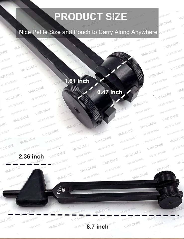 Especificación:Exámenes de audición, terapia de sonido, Los diapasones se utilizan en la terapia del sonido para promover la relajación., Detección de Fracturas por Estrés, detección de vibraciones anormales, Evaluación de la Densidad Ósea