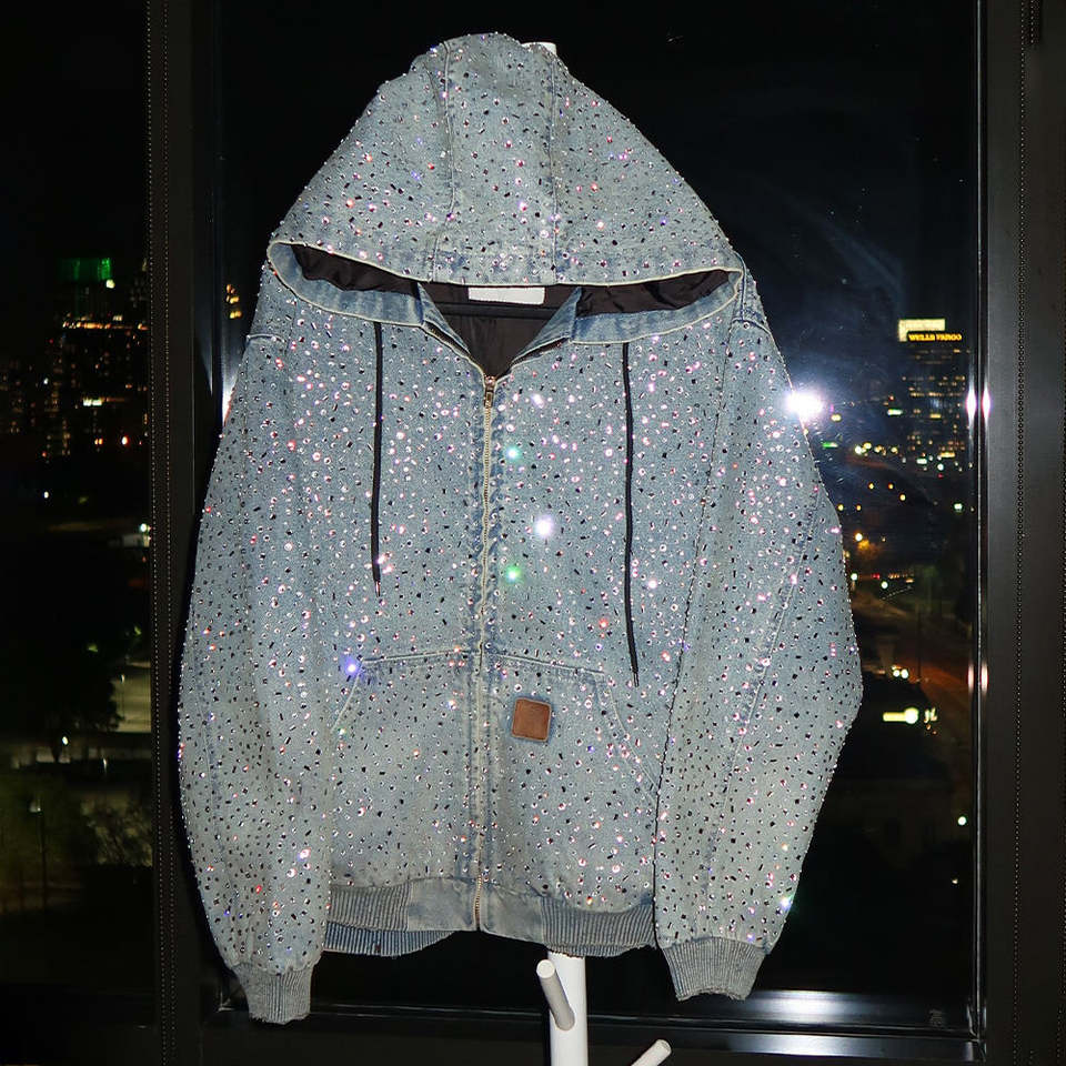 Chaqueta de Neopreno con Diseño de Corazón de Cristal para Hombre, Estilo Urbano, Oversize, con Apliques y Cierre de Cremallera, Marca OME CUSTOM Naisen