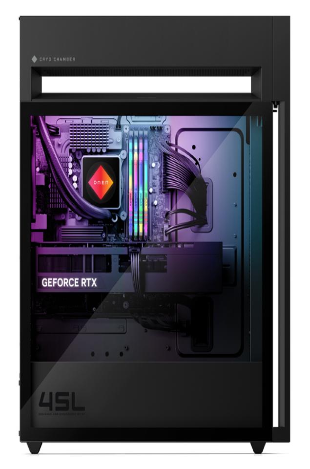 Ordenador de sobremesa OMEN 45L para videojuegos Intel PC Intel Core Ultra 9 285K, GeForce RTX 4090 6000, 32GB, 64GB, o DDR5, 64GB, para HP, en el que se puede ver el más pequeño