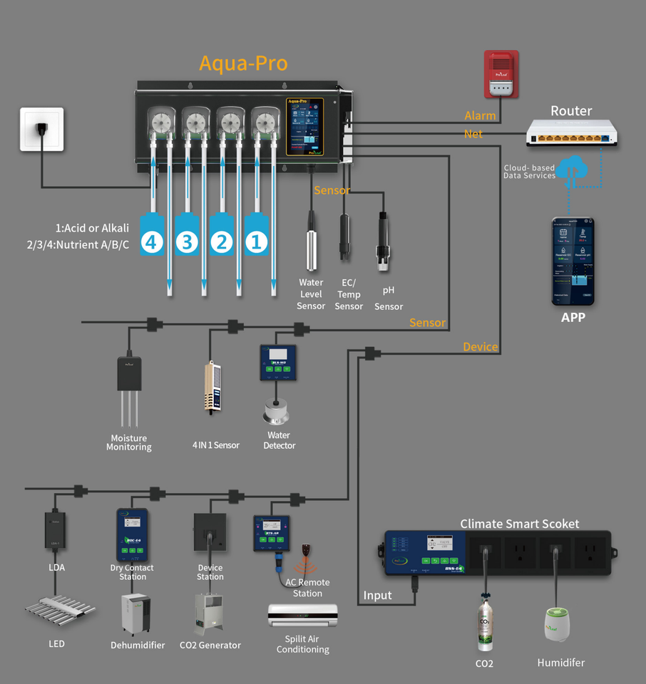 Accessories:Pump, filter, PH EC sensor, Valve etc