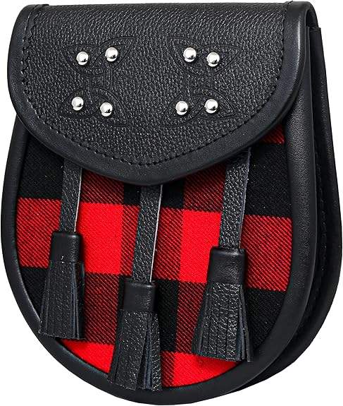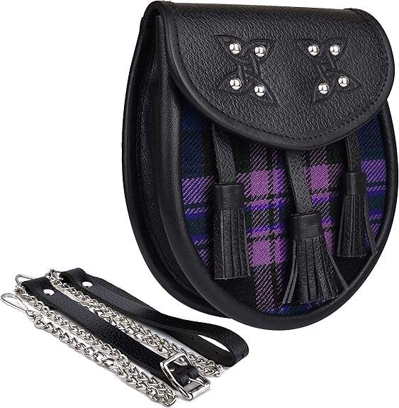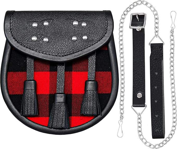 ONSTYLE SPORTS Escocés Personalizado Tartán Sporran Hombre Escocés Nacional Escocés Tartán Cuero Sporran Con Correa De Cadena