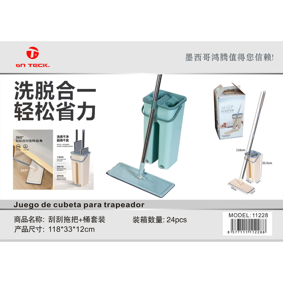 Juego de fregona y raspador con cubo, duradero, para limpieza del hogar 11228