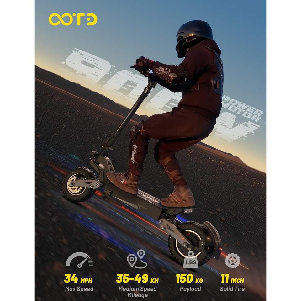 Patinete Eléctrico OOTD T10 para Adultos, Motor de 900W de Potencia Máxima, Velocidad Máxima de 34 MPH, Batería de 48V 13.5AH, Ruedas de 11 Pulgadas, Alcance de 31 Millas, Capacidad Máxima de 150 kg