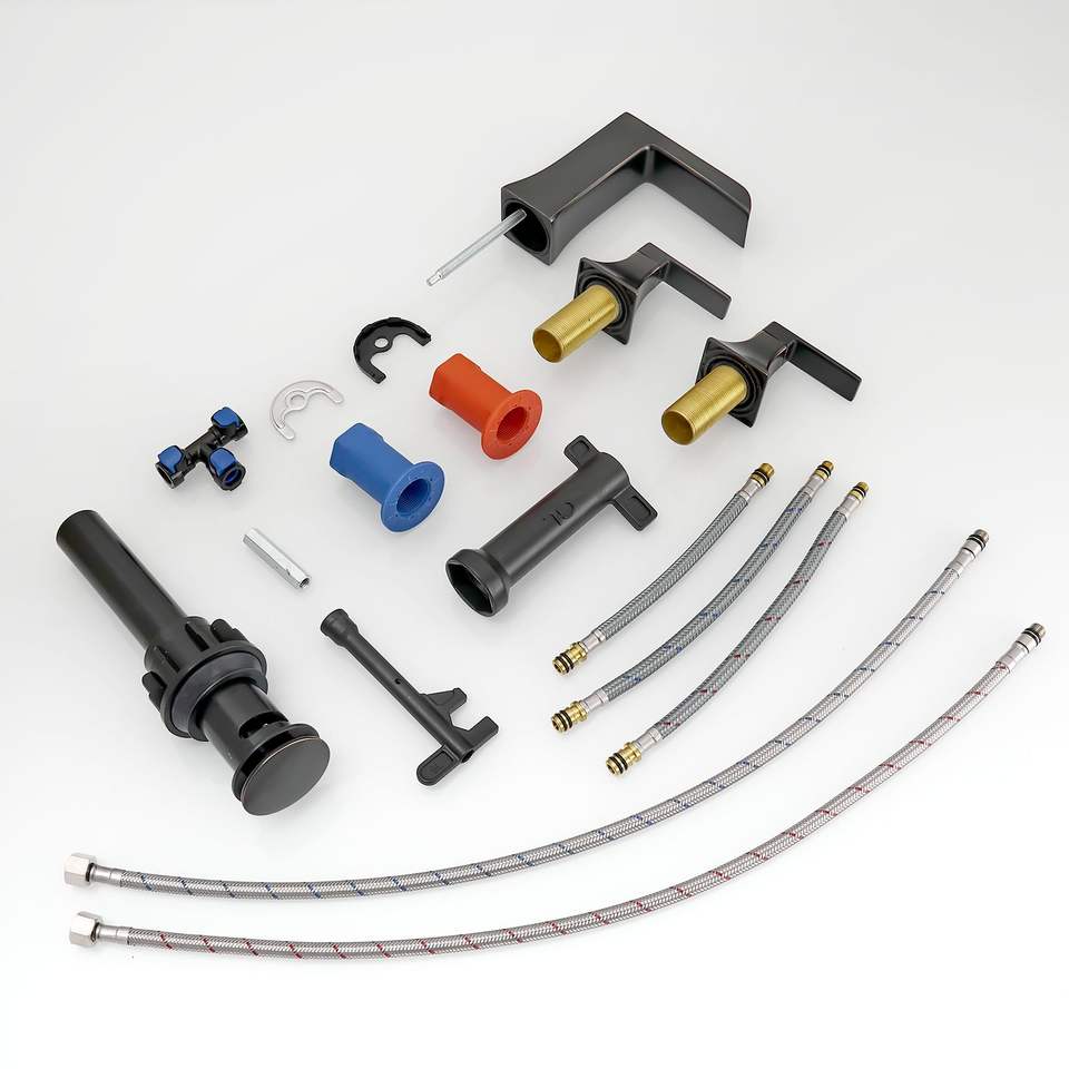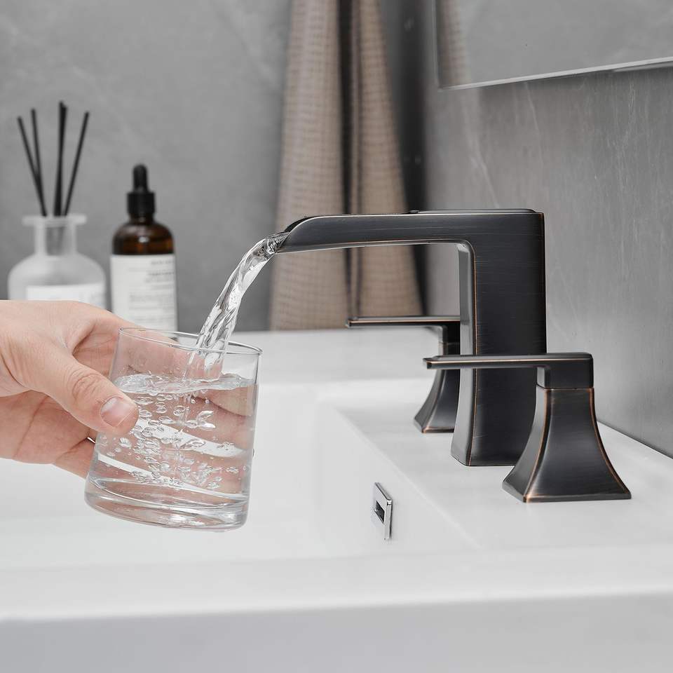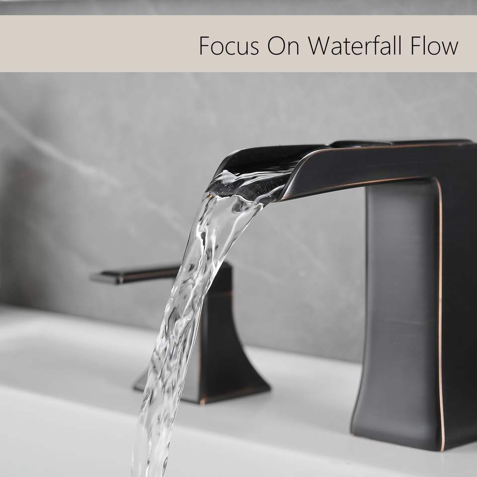Grifo de Baño ORB de 8 Pulgadas con 3 Orificios, Grifo para Lavabo con Válvula de Desagüe, Doble Manija, Acabado ORB