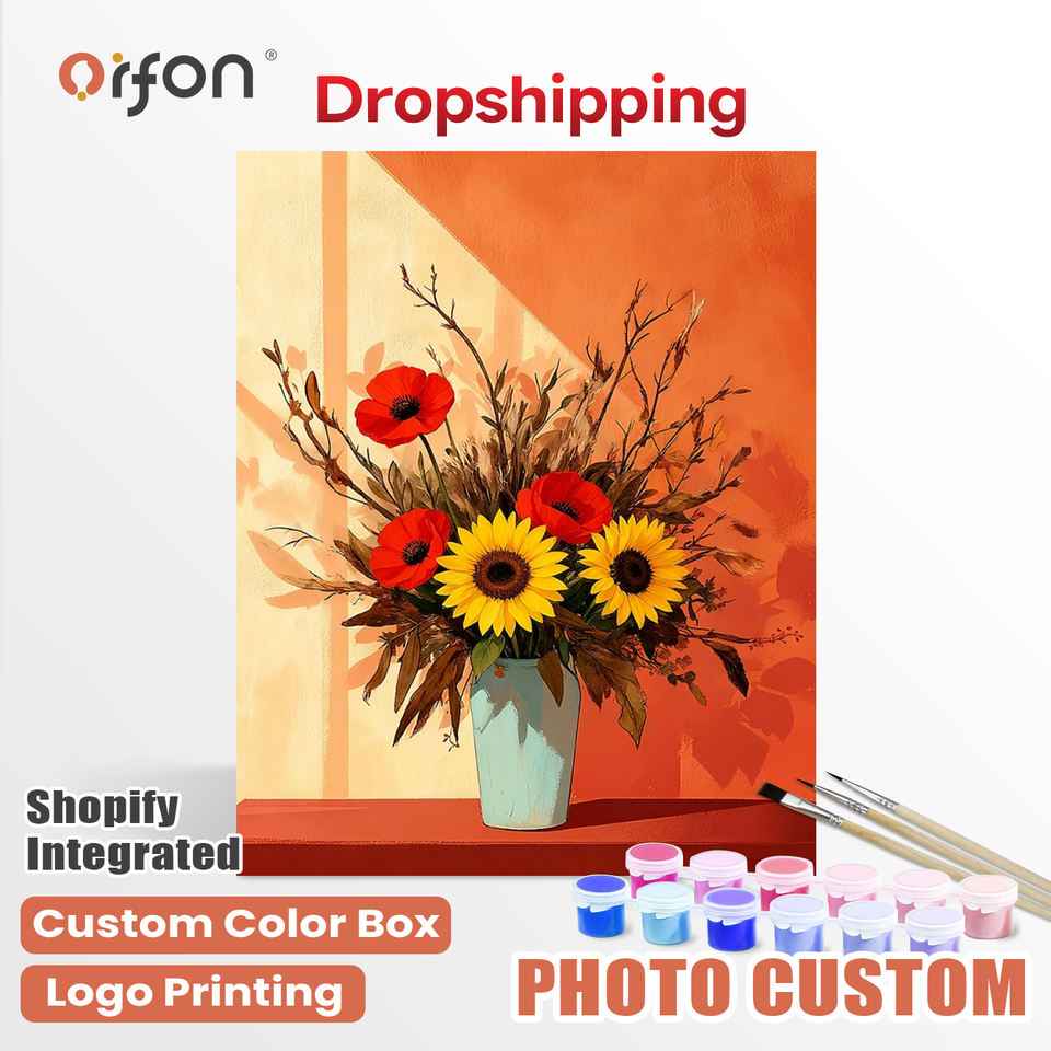 Kit de Pintura por Números ORFON para Envío Directo - Arte de Ramo de Girasoles y Amapolas para Decoración del Hogar, Suministros de Manualidades al por Mayor