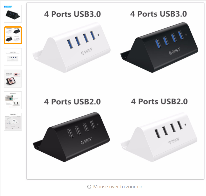 ORICO-Mini HUB de 4 puertos USB 3,0/2,0 de alta velocidad, 5Gbps, para ordenador portátil de escritorio, con soporte para teléfono, tableta, PC, negro/blanco