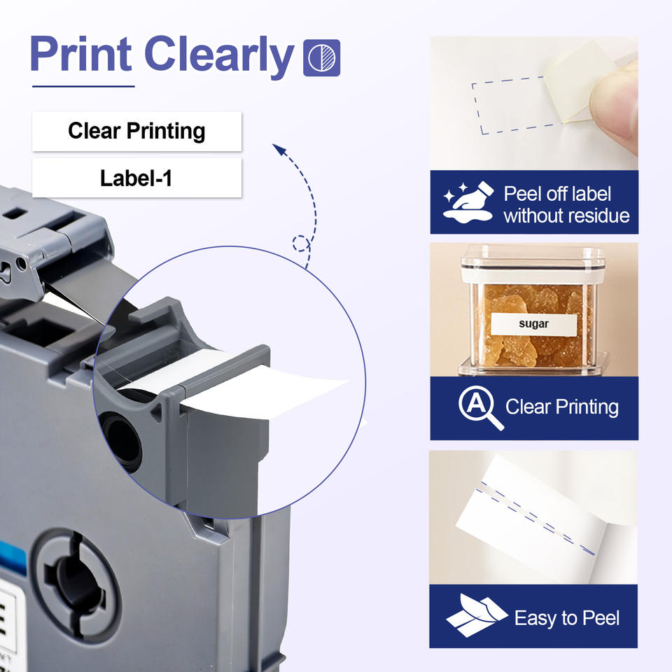 Cinta de Etiquetas Compatible con ORISON Tz 231 Tze 231 de 12 mm, Laminada, PET, Negra sobre Blanca, para Impresora de Etiquetas Brother P-touch
