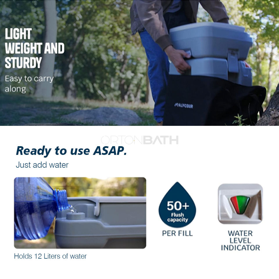 ORTONBATH Inodoro portátil para interiores y exteriores Inodoro móvil, ligero y compacto para acampar, barco, furgoneta, uso de emergencia