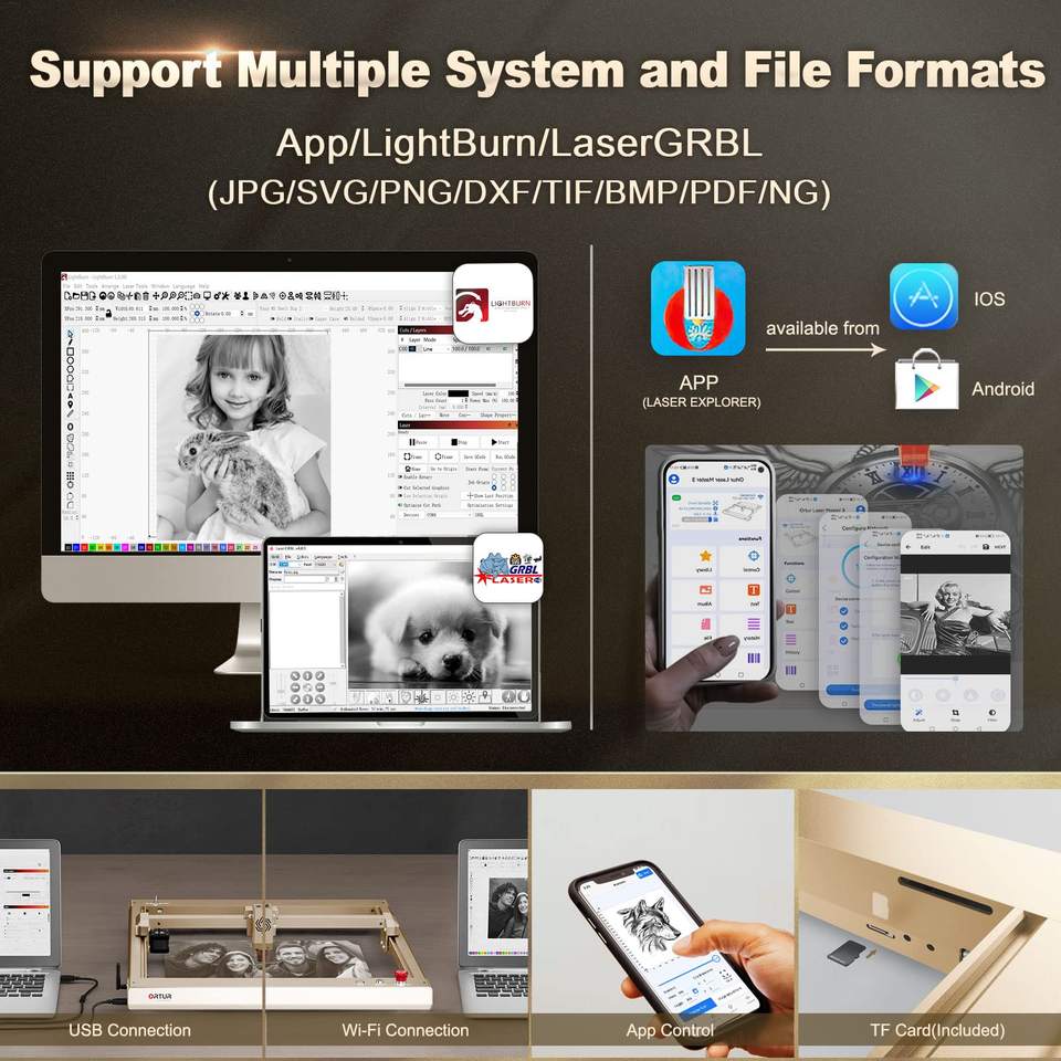 ORTUR-Máquina de grabado láser de alta velocidad, portátil, color dorado, 400x400mm, OLM3 LE, 15.000 mm/min