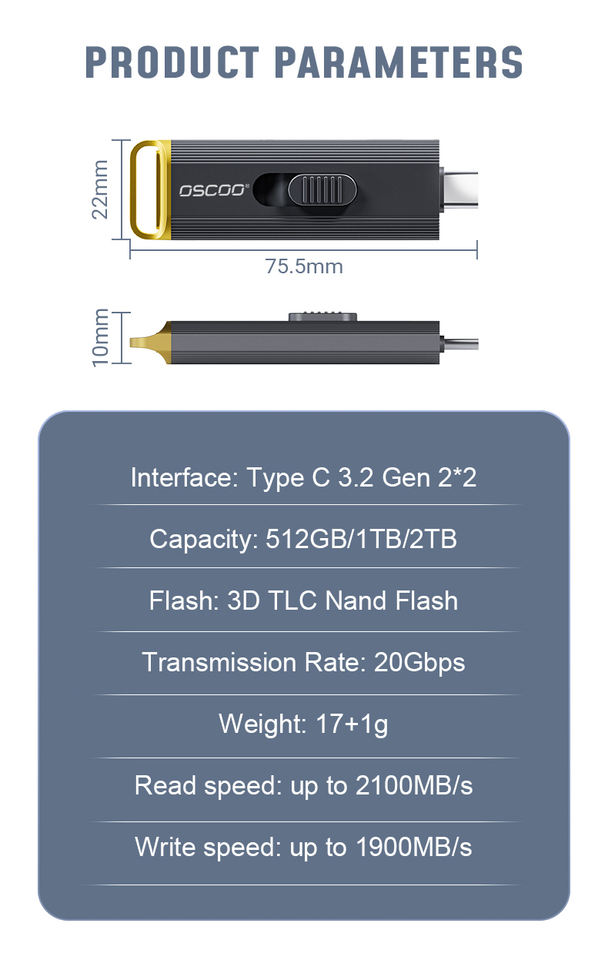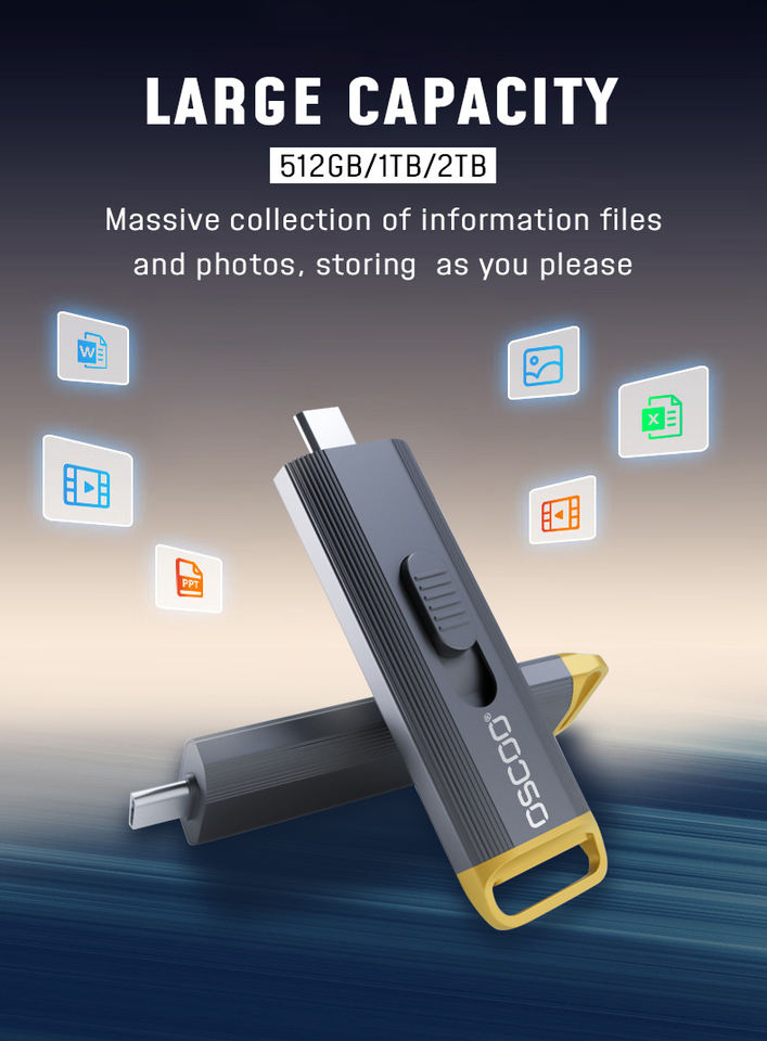 Unidad Flash USB 3.2 de Metal OSCOO de 20 Gbps, 512 GB/1 TB/2 TB, Encriptada, Garantía de 3 Años, Precio de Fábrica, Buena Calidad