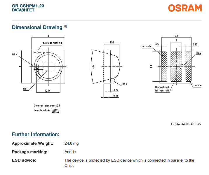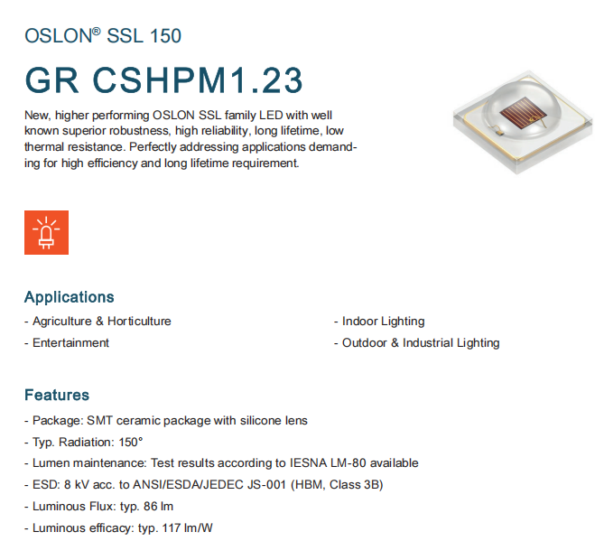 OSRAM GR 1/2 86lm 2,1 V 0,74 W 612-630nm 3x3mm 177lm/W LED de un solo color OSLON SSL 150 HI PWR SMT ROJO 3 años