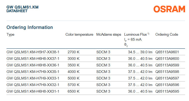 Chip LED SMD para iluminación interior OSRAM OSCONIQ S GW, 2700K, 3000K, 3500K, 0,18 W, 2,71 V, 3030 K,