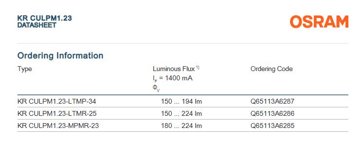 Product name:OSRAMs OSTAR Projection Compact, KR CULPM1.23