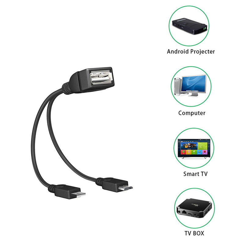 OTG Micro USB Host Power Y Splitter Adaptador USB Estándar Cobre estañado BOXPUT CN;GUA Cable de PVC a Mirco Macho Hembra Negro 2 en 1