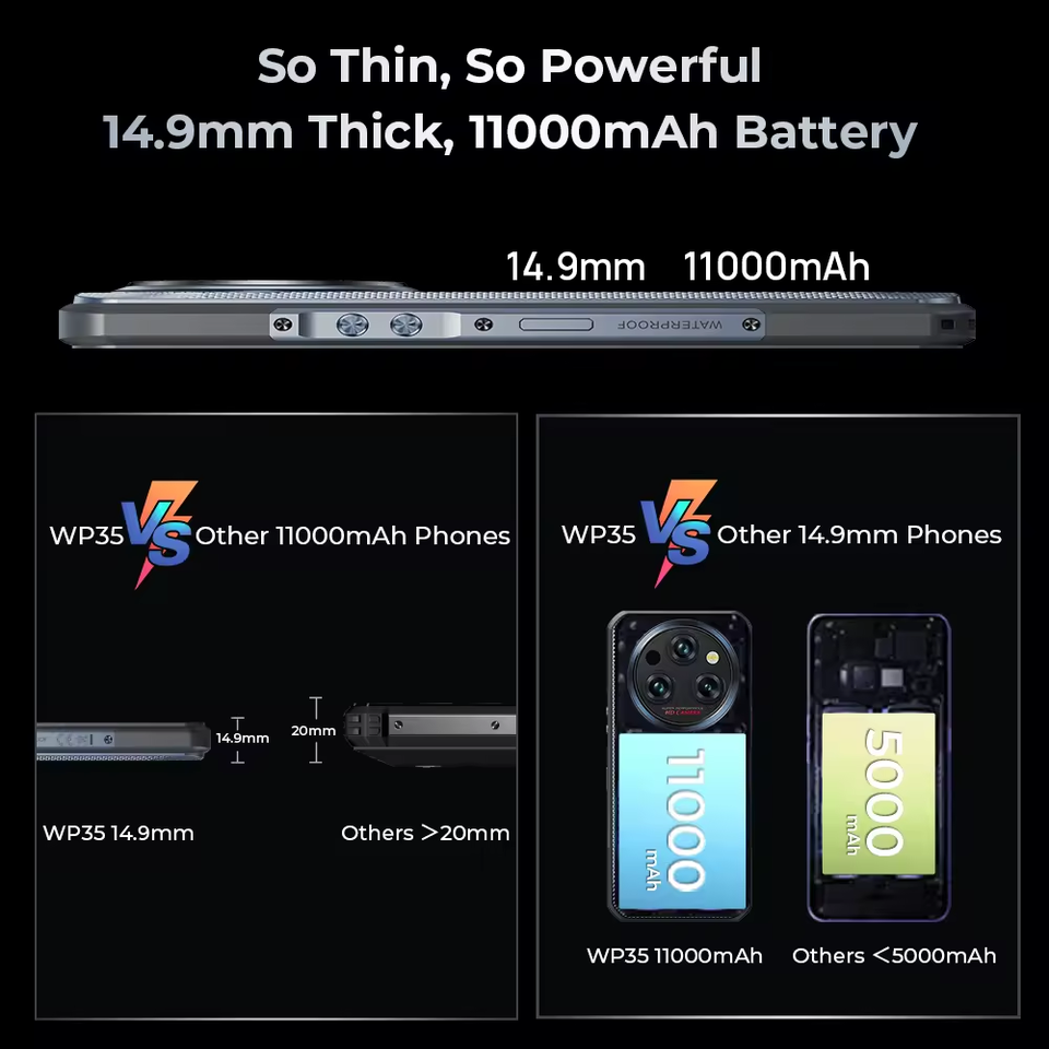 OUKITEL WP35 5G teléfono inteligente resistente pantalla LCD de 6,6 pulgadas 24GB + 256GB memoria 11000mAh batería de carga rápida 64MP IP68 NFC inglés