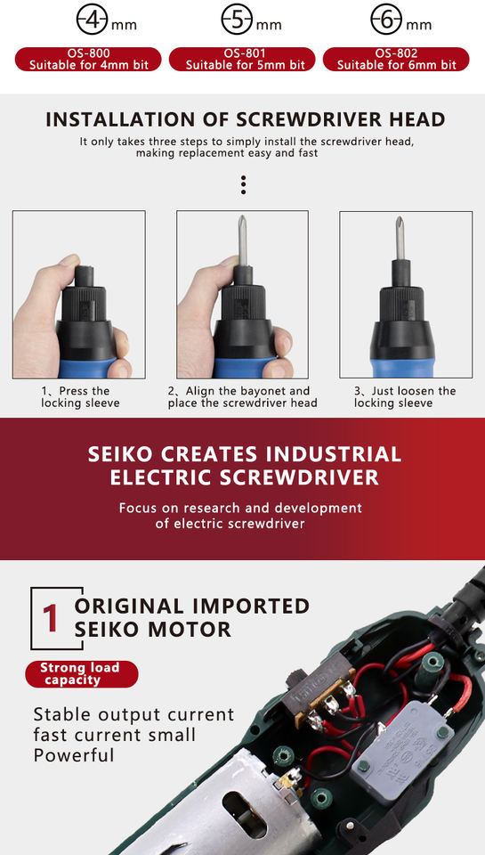 Destornillador OUSHEN OS-800 Motor de cepillo económico DC Destornillador eléctrico Seiko semiautomático