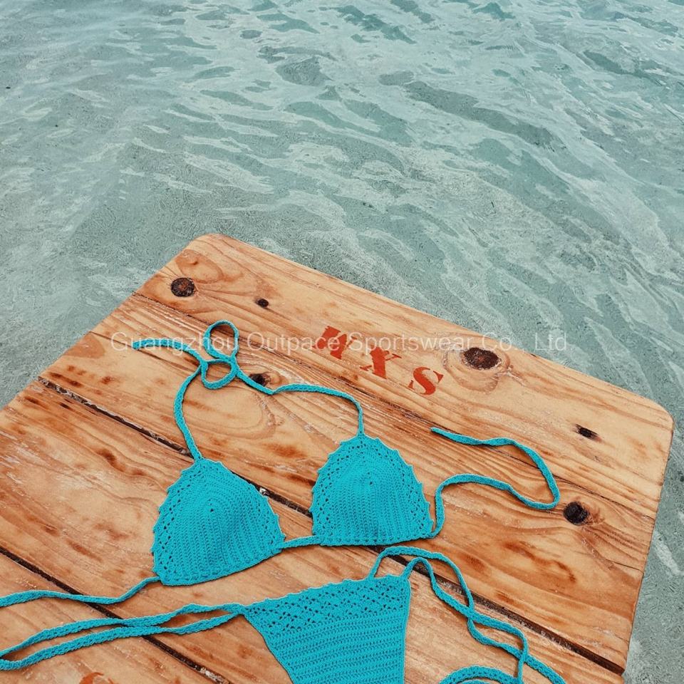 Traje de Baño de Dos Piezas OUTPACE Hecho a Mano en Spandex/Nylon, Bikini de Crochet de Color Sólido para Mujer, Talla Grande, en Oferta