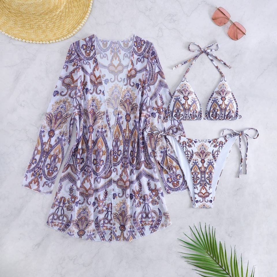 Traje de Baño de 3 Piezas OUTPACE para Mujer, Diseño Modesto con Estampado Animal, Cintura Alta, Tallas Grandes, Spandex/Nylon Ecológico