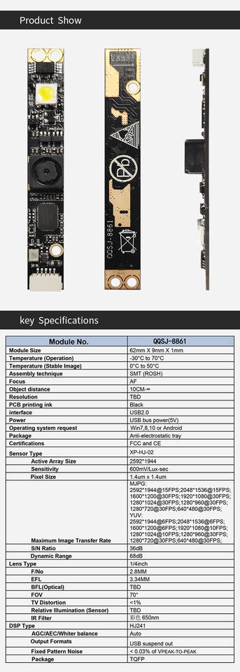 OV5640 5MP YUV MJPG con LED visión nocturna 650nm USB QR Módulo de cámara de escaneo