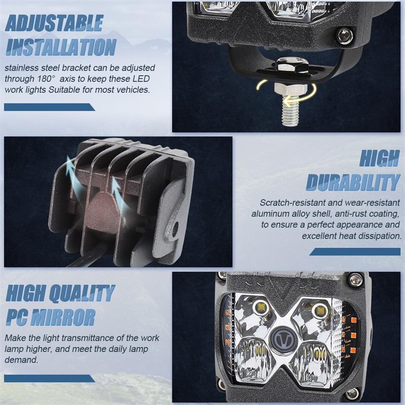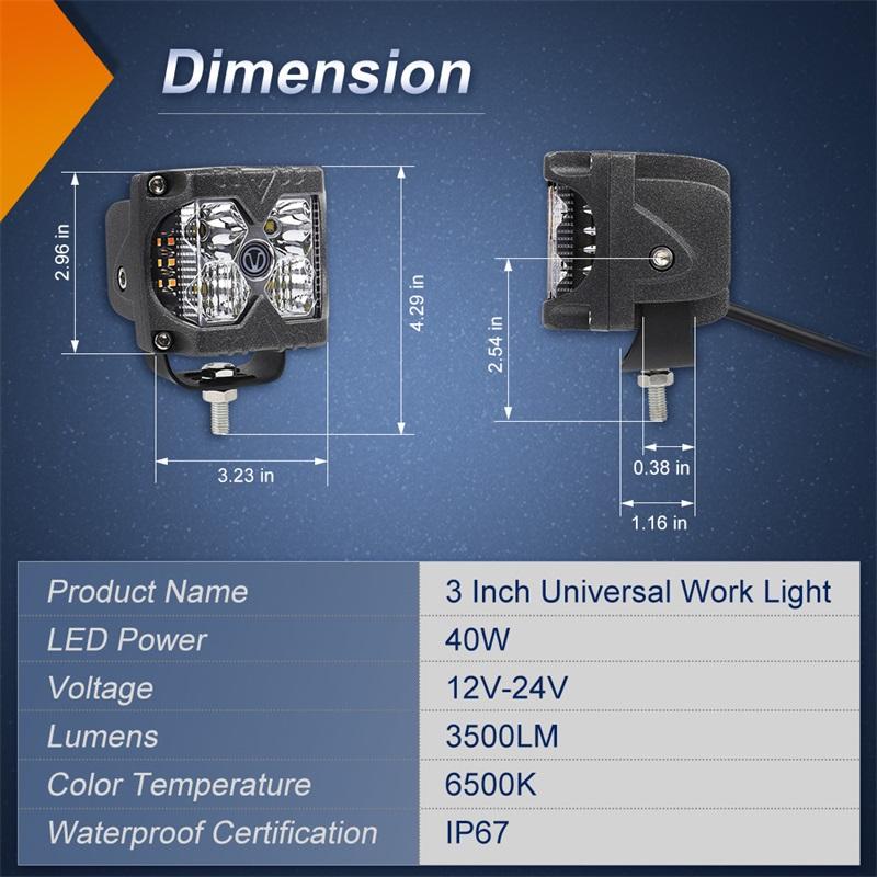 OVOVS-Foco de trabajo de 40W, luz Led impermeable, luz de trabajo estroboscópica lateral automática