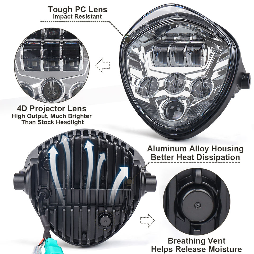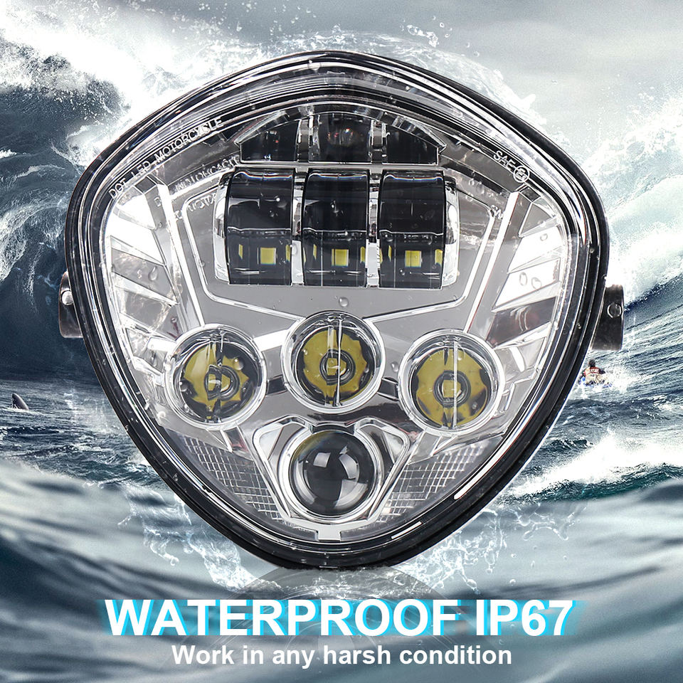 Faro Delantero para Motocicleta OVOVS de 7 Pulgadas con Soporte de Abrazadera, Fondo Rojo, Luz DRL Blanca, Luz Alta/Baja para Motocicleta Honda Yamaha Triumph
