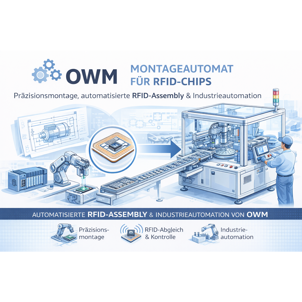 Máquina de montaje para chips RFID – montaje de precisión, ensamblaje automatizado de RFID y automatización industrial de OWM