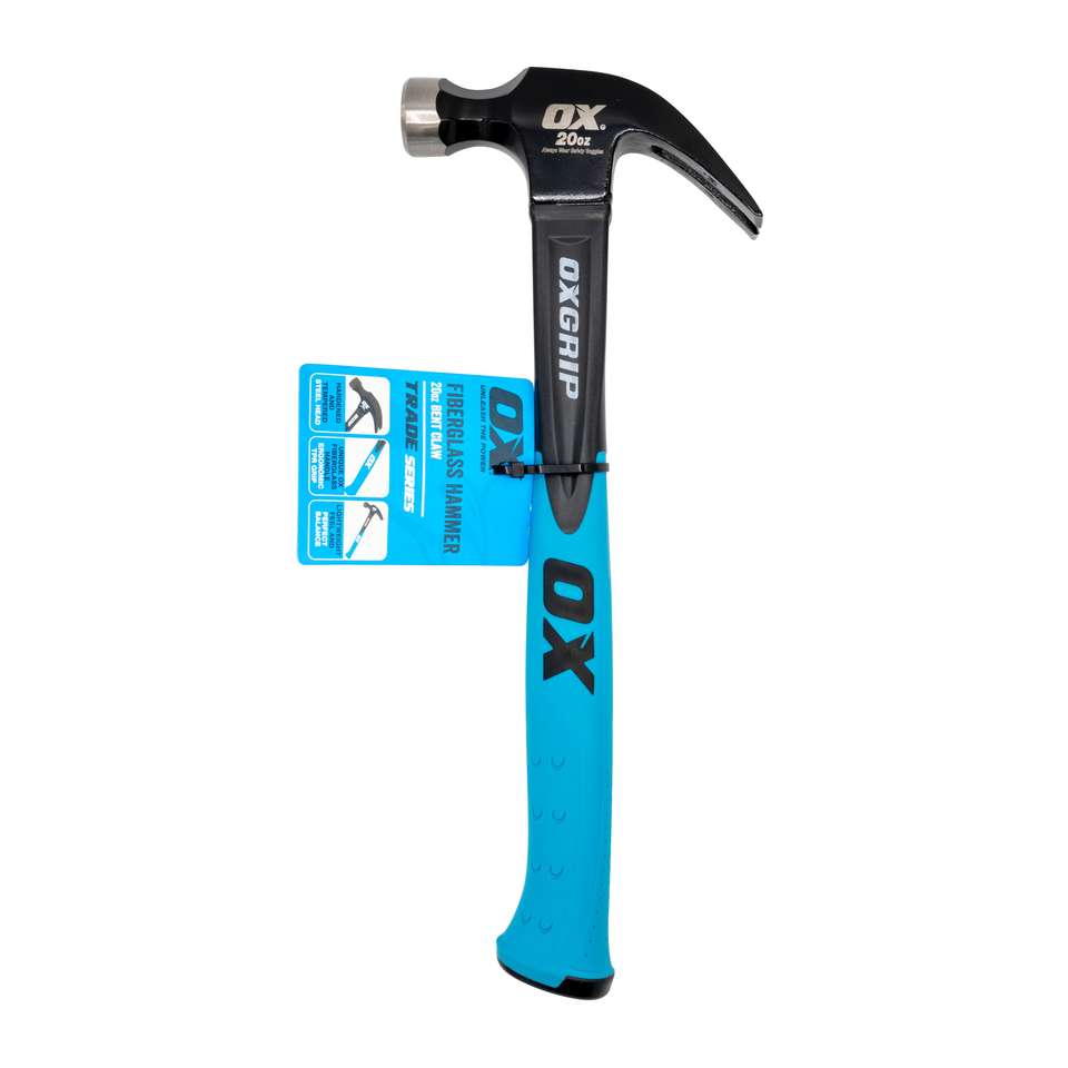 OX Tools Trade Martillo de garra curvo con mango de fibra de vidrio de 16 onzas