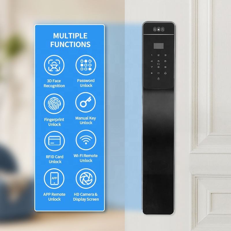 Cerradura de puerta digital inteligente OYO, aplicación biométrica 3D, reconocimiento facial, cerradura de puerta inteligente negra, anillo de pantalla electrónica, cámara de timbre de puerta