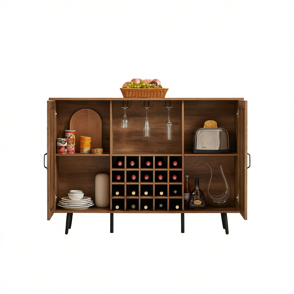 Mueble para Vino de Madera Color Roble, Diseño de Doble Puerta, Estantes Extraíbles, Almacenamiento para Kits de Elaboración Casera de Cerveza, Modelo D0100HAR7CV