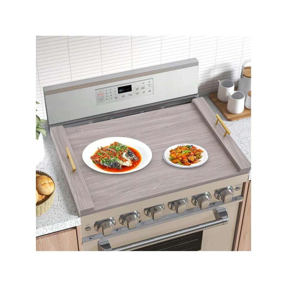 Tablero de fideos blancos de roble, cubierta superior de estufa, tapas de placa de estufa de Gas eléctrica con tacto decorativo de madera, accesorio de utensilios de cocina