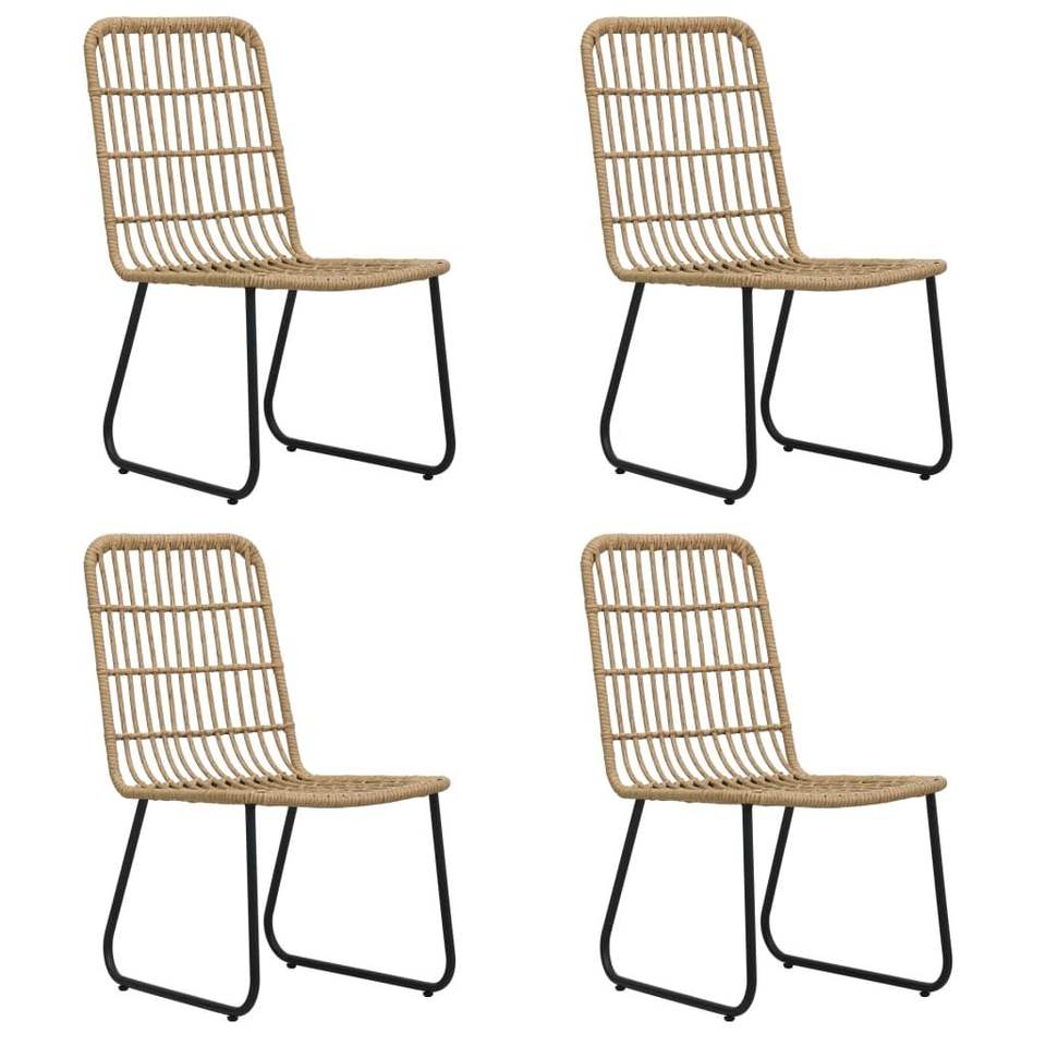 Conjunto de Comedor de Ratán Sintético Negro y Roble con Acero con Recubrimiento en Polvo y Vidrio para Jardín