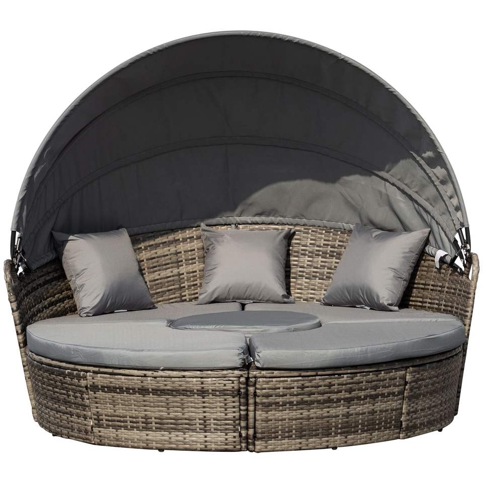 Conjunto de Muebles de Patio de Ratán Oasis Convertible de 4 Piezas, Incluye Toldo Ajustable, Diván y Sofá Seccional