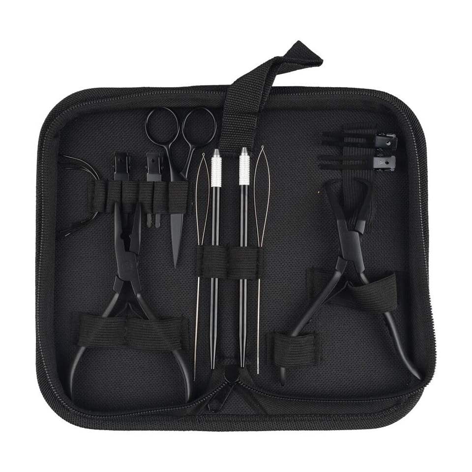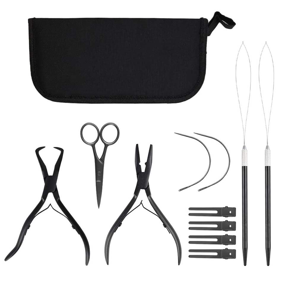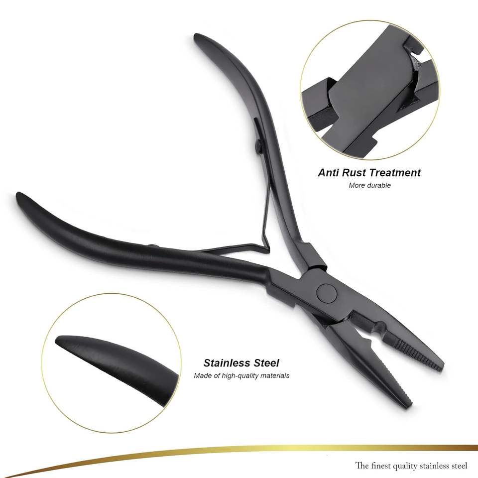 Kit de Herramientas Ergonómicas Obexa para Extensiones de Cabello, Color Negro, Alicates de Acero Inoxidable, Abridor de Microlink, Juego de Clips para Trama, Bolsa de Almacenamiento, Uso Profesional