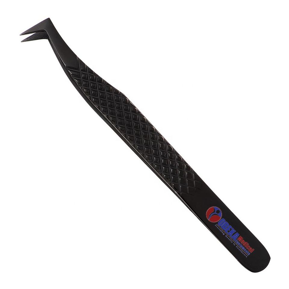 Pinzas para Pestañas Obexa Profesionales de Acero Inoxidable con Punta Redondeada y Diseño de Agarre Fácil para Aplicar Extensiones de Pestañas