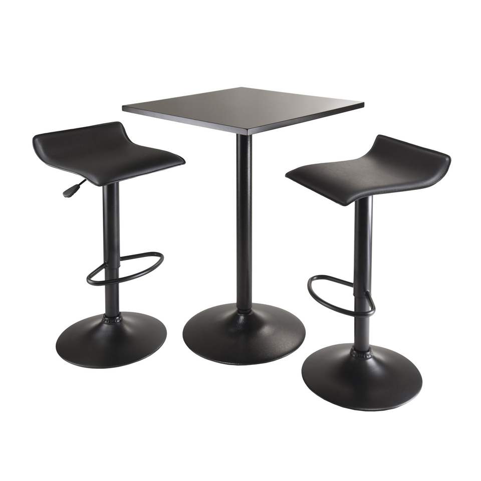 Juego de Mesa Obsidian de 3 Piezas, Mesa Cuadrada a la Altura de Barra con 2 Sillas de Bar Negras con Elevación Neumática
