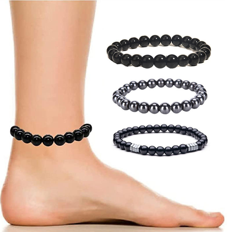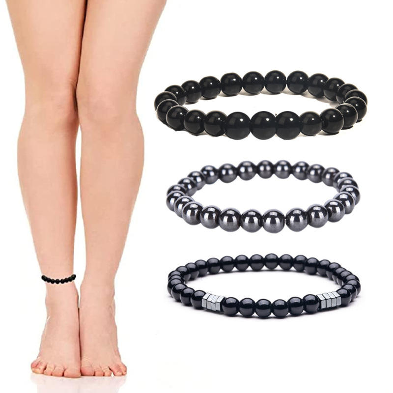 Tobillera de Obsidiana para Adelgazar, Ajustable, Drenaje Linfático, Pulsera Magnética de Hematita, Tobillera Antiinflamatoria Negra