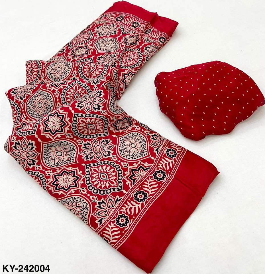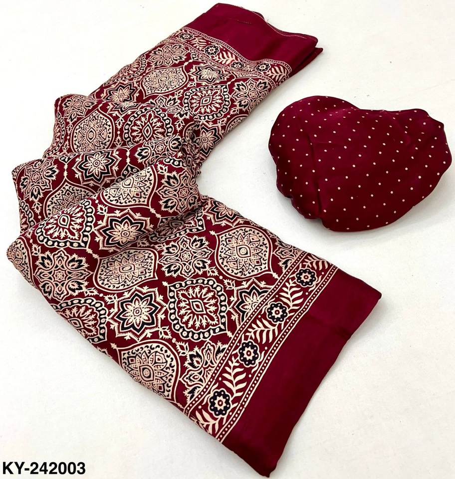 Pure Modal Ajrakh With Lagadi Patta And Handblock Print Work Saree