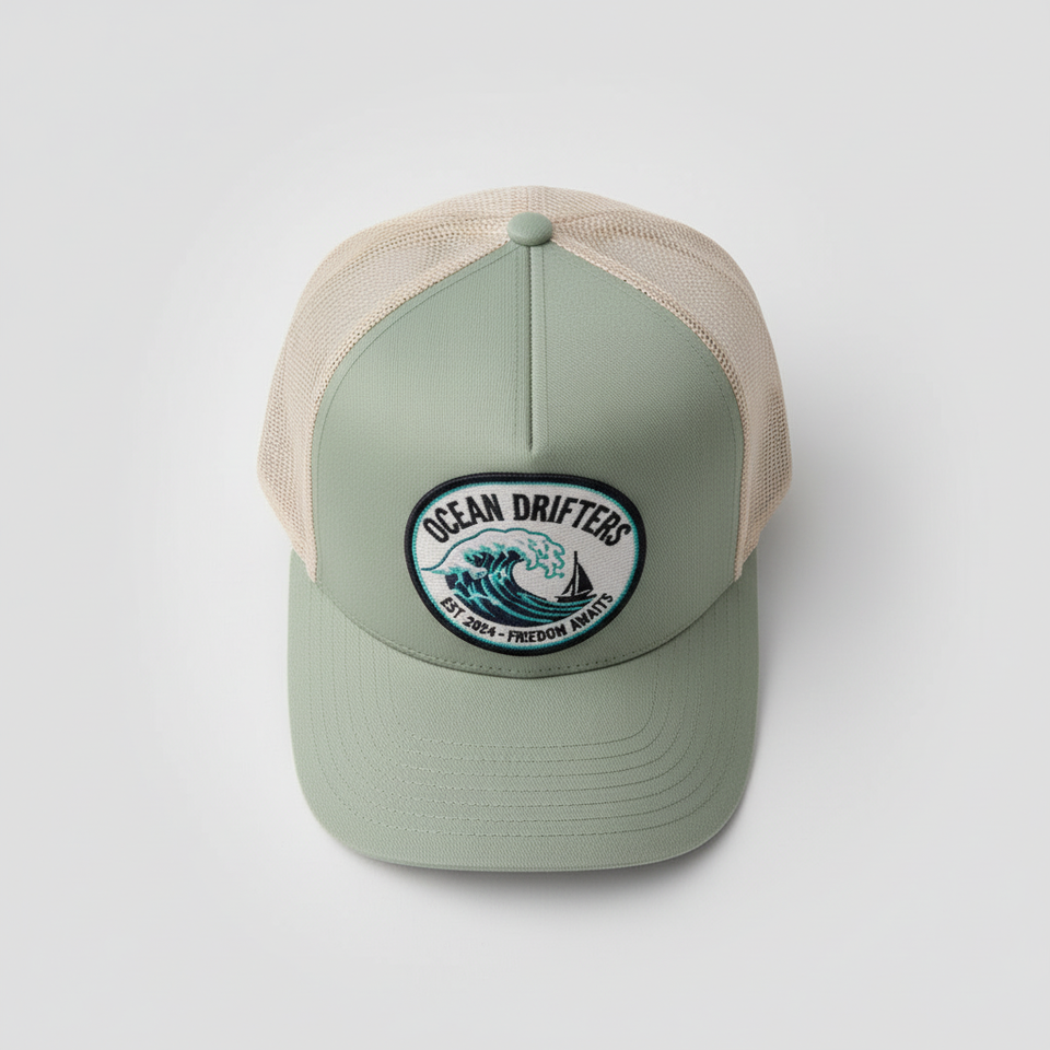 Gorra Trucker con Logotipo de Ocean Drifters - Gorra de Béisbol con Malla Verde Oliva, Gorra de Sol Ajustable para Hombre