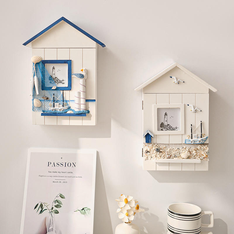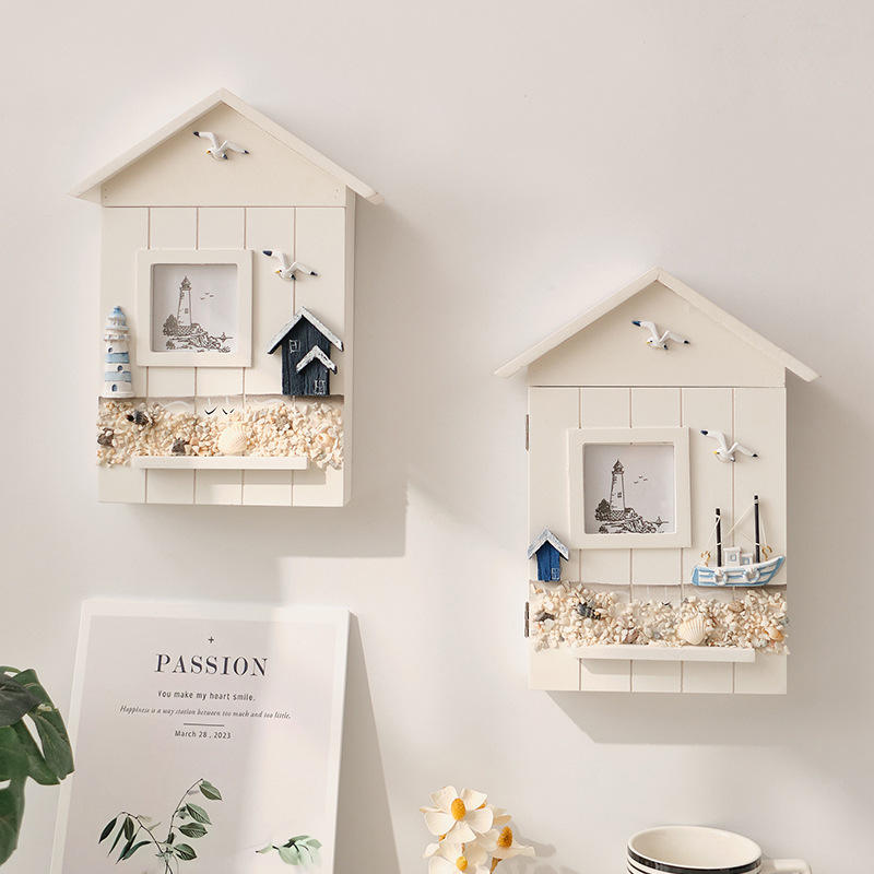 Caja para Llaves de Estilo Mediterráneo, Gabinete de Almacenamiento Montado en la Pared, Decoración con Aves Marinas, Faro y Velero
