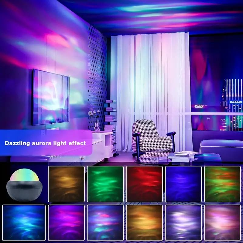 Ocean Wave Aurora proyector luz 16 colores dynami aurora del Norte proyector inteligente luz de noche RGB resplandor humor luz regalos
