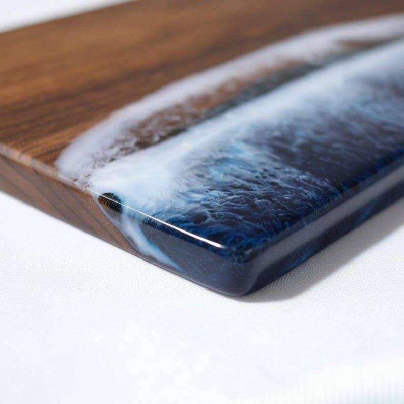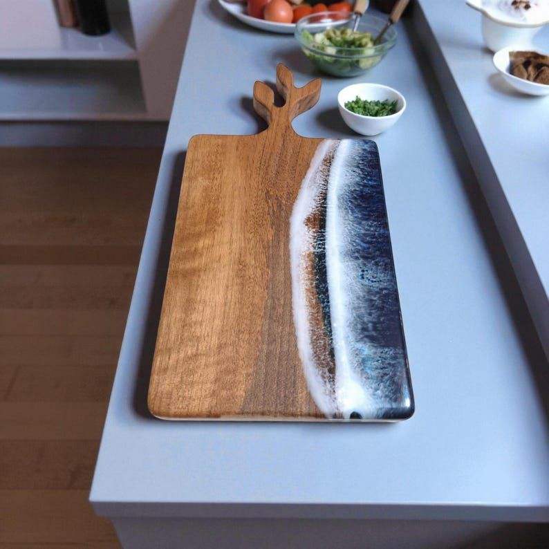 Tabla de cortar rectangular de resina con diseño de olas oceánicas, 1.3 cm de grosor, mango para cuchillo, fácil de limpiar y no tóxico, apto para lavavajillas