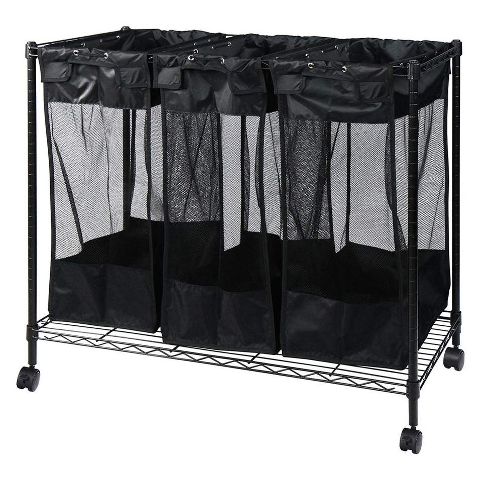 Cestas de Lavandería Plegables Oceanstar con Triple Compartimento, Organizador y Clasificador de Ropa