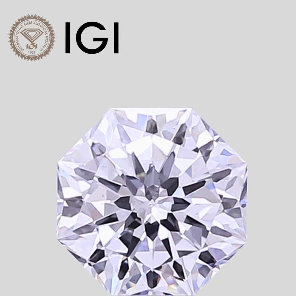 Diamante Octogonal de Laboratorio de 1 Quilate, Corte Octogonal, Claridad VVS2, Color E, Certificado IGI
