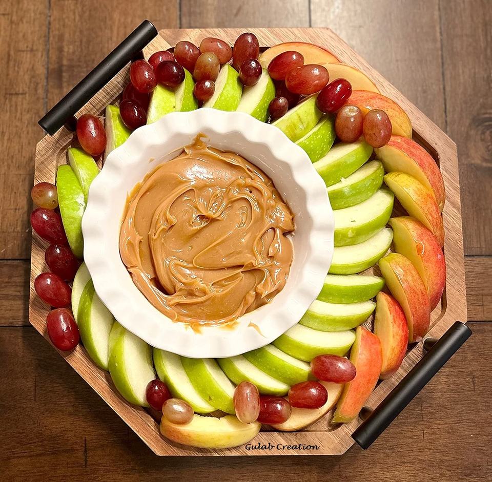 Bandejas para servir de madera de acacia octogonal hechas a mano, Plato decorativo de madera natural para aperitivos, aperitivos y uso en la mesa de comedor