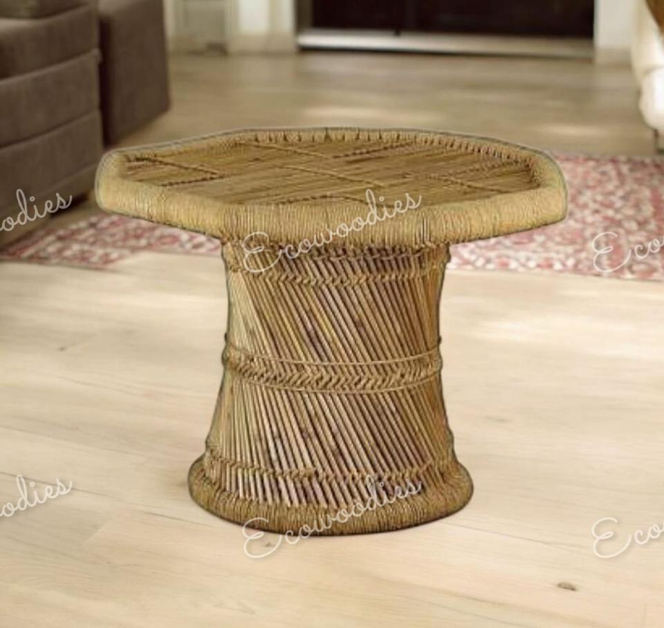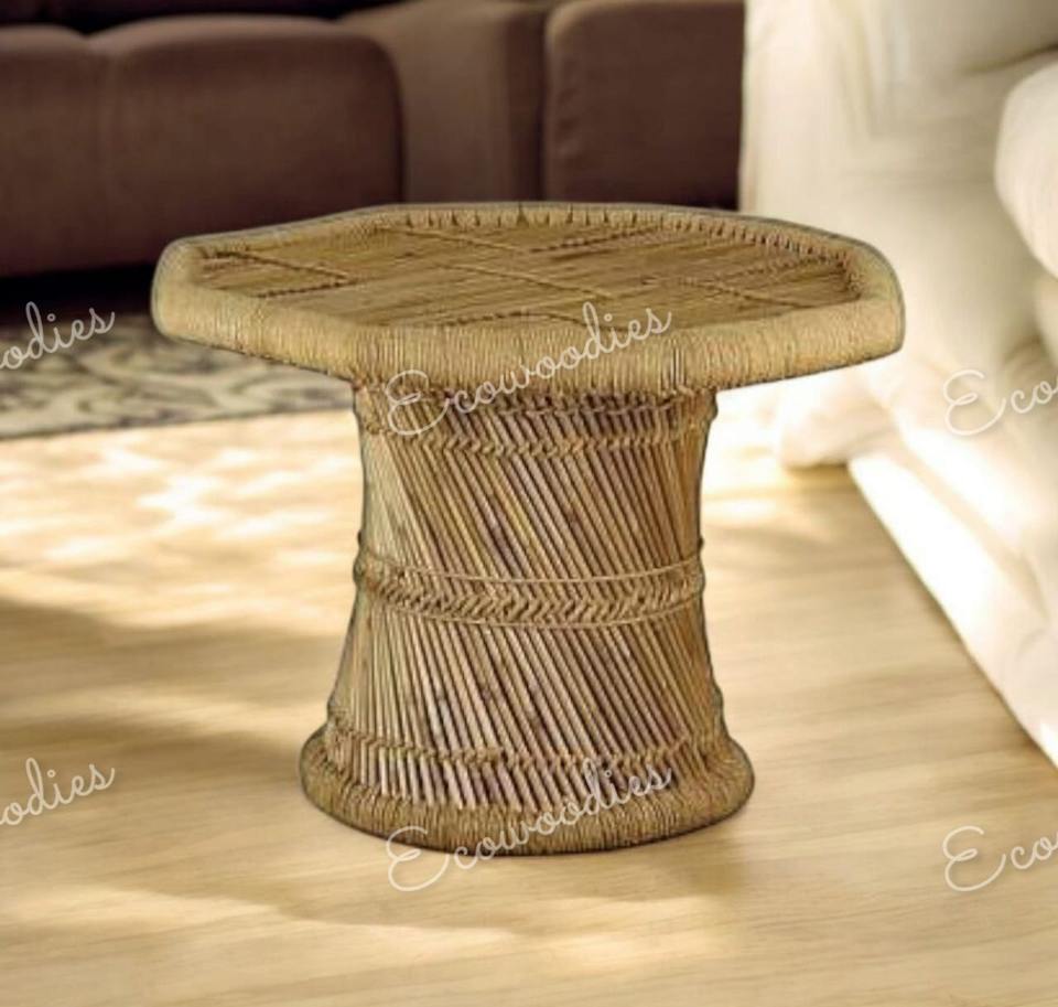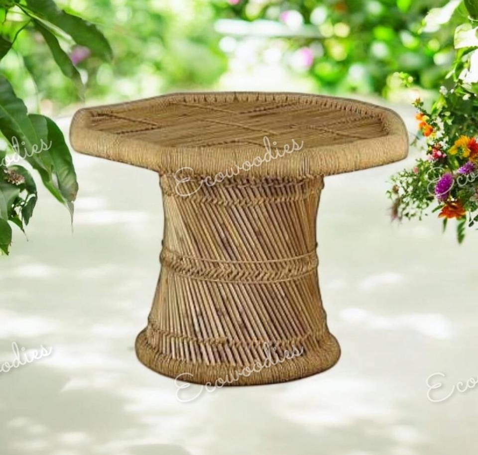 Mesa de centro de mimbre octogonal, mesa de mimbre tejida a mano con Base de madera, muebles de sala de estar naturales, consola con incrustaciones de hueso